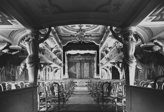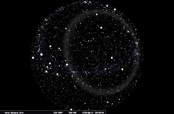 The celestial map of the sky wrapping the Villa in 1763, year of its construction, was used to modulate the visible shape of the theatre.
